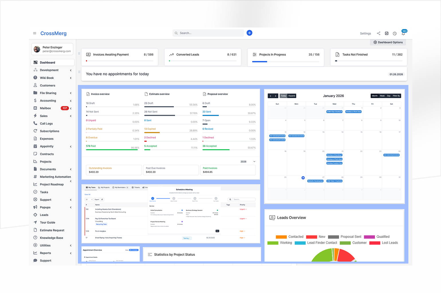 CrossMerg keeps contacts, quotes, jobs, and billing in one place so you can respond faster and follow up without stress.